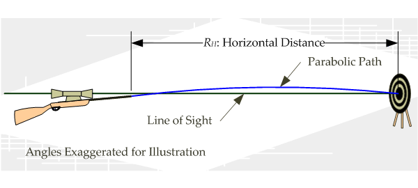 ساچمه به محض خارج شدن از دهانه تفنگ در معرض جاذبه قرار گرفته و افت به طرف سطح زمین را آغاز می کند. این بنیاد فیزیک است.همین نکته باعث می شود نتوانیم همواره در مسافت های مختلف با مرکز بعلاوه (Reticle) به سمت اهداف نشانه روی کنیم . هر تیراندازی که در مسافت های متغیر تیراندازی می کند ملزم به تهیه الگوی تراجکتوری پرتابه سلاح خود و استفاده از جدول بالستیک است.